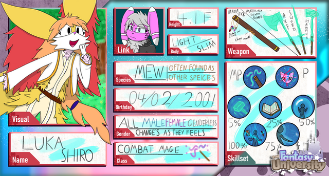 Older brother: espeon, lives with them is also in college to study art and sewing, works with his mother on his off time.