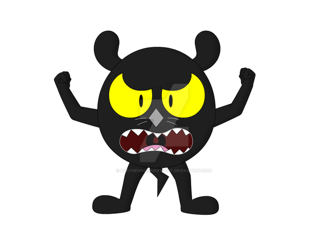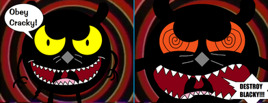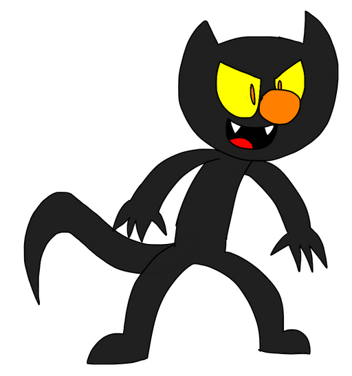Blacky’s eyes turn light green with slit pupils, his teeth turn sharp, and he grows claws on his hands and sharp nails on his feet