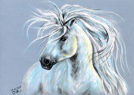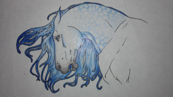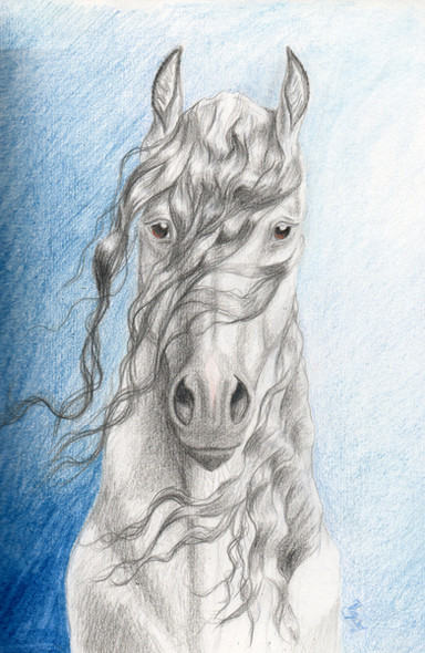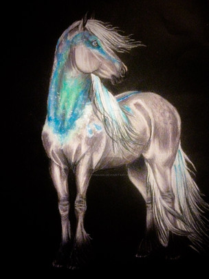 I really, realllly love that swooshy hair. It looks so soft and silky, I just want to run my fingers through it! And now I want to dye my hair that color, so lovely. The white markings are beautiful, they're very natural and really bring out the blue. How did you get that smokey effect of the background? It's beautiful. Did you use prismacolors for the horse? Yeah, I think I need to break those out and practice now. Very inspiring! I don't know if you've done a tutorial for the way you color (I'm about to check and see) but I think you should. You've got this rich, smooth style going that really makes my eyes happy.