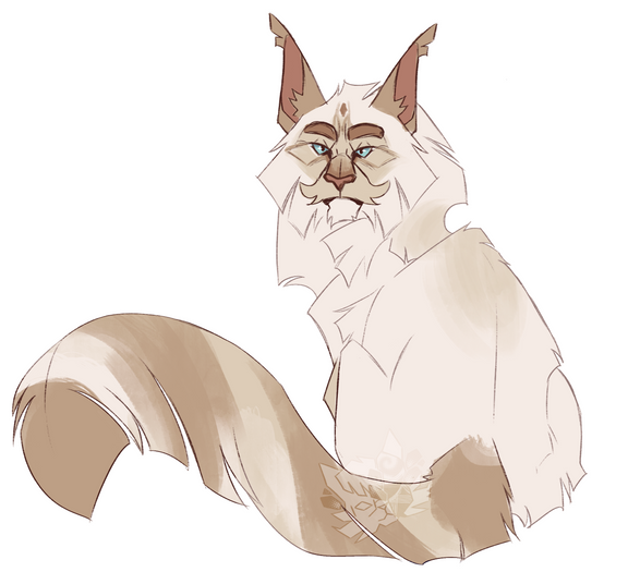 I opted to make him a High White Colorpoint, based off AFuniversCat family tree, with a Snowshoe CloudtailThought it was cute, and I usually give him Cream ears anyway!