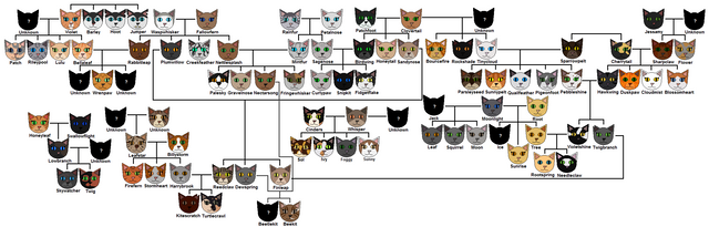 so like I've heard a lot of complaints lately about certain new couples in the newest warriors books being related but reading this tree it seems that even older couples like squirrelflight and brambleclaw are distant incestΒ