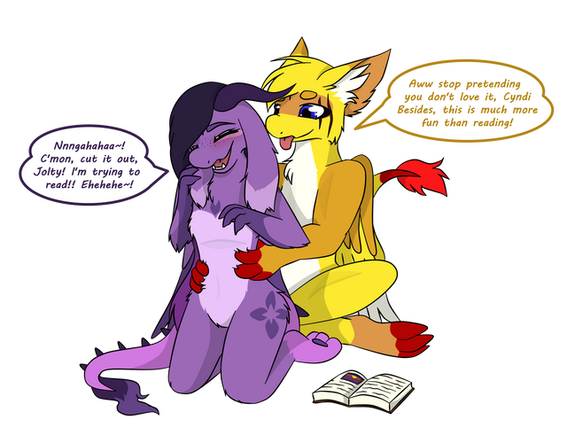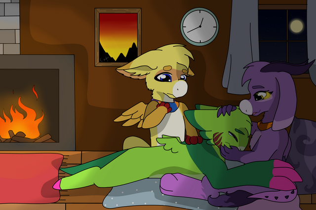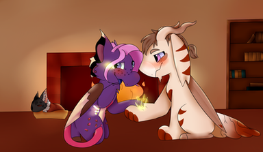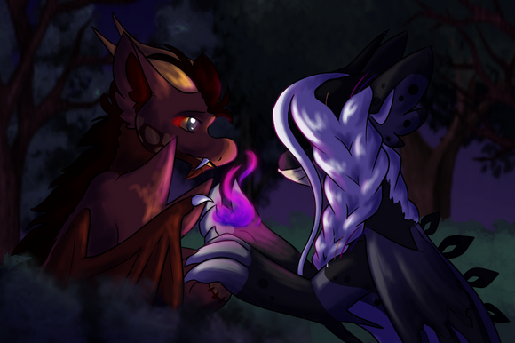 The imp stretched out his paw and offered it to her. Cynder’s face flushed a bright red as she sheepishly as she took a hold of her claws and pulled her off the muddy forest ground.