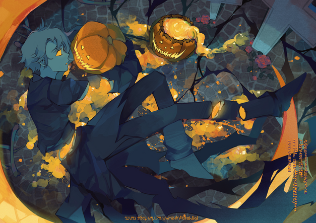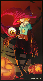 THAT HAIR!! XD beautiful Lea!! XD I lvoe the way you shade and the different colors used. ^^ The hair looks absolutley beautiful and shiny~ XD and I love the smoke cming out of the pumpkin and the eyes. XD