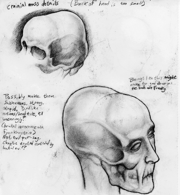 It's not a mutation, so much as a former human, and I just didn't give enough weight to the back of the skull width wise. The length is about right, if you realize it's emancipated and the neck is giving you a false sense of proportion. s'all