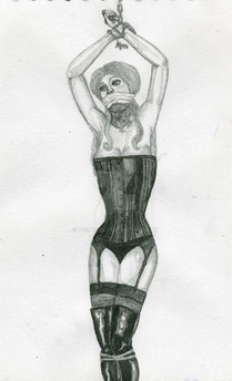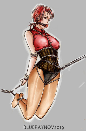 #adult #bdsm #bondage #eroticart #illustration #latex #maturecontent #predicament #ropebondage #shibari #bondageart
