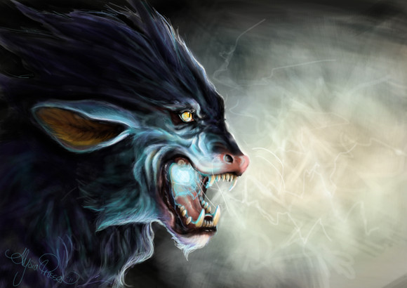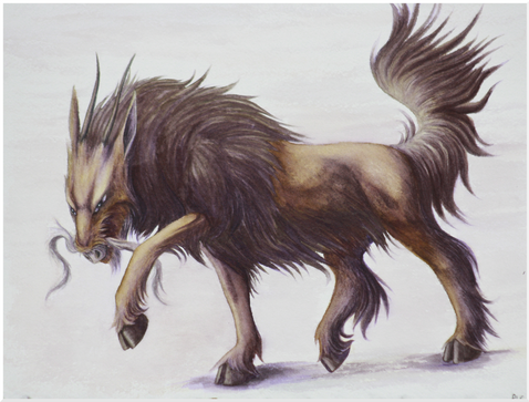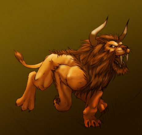 I'm all about people making realistic interpretations of pokΓ©mon, but....I really, truly think you just didn't pull this one off well. Even without taking into consideration that this is supposed to be Entei, the white 'fur' on his back in combination with the horns just looks awkward, and the horns on his head just look kind of...stuck on there. Perhaps if you extended that 'fur' to make it look more like realistic, wispy smoke, and either gave him a bit more of a mask or make his body hair shaggier, it could come off more as an Entei. I can tell you were trying to avoid making it look totally recognizable, but I feel like it could have just a bit more of an impact if either his body fur was longer or that really wiry 'fur' on his back looked less like it was just stuck on there.