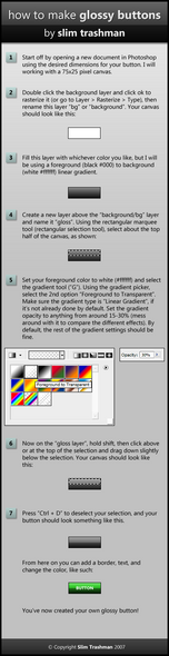 Learn how to make those cool Vista glossy buttons; follow thsi tutorial to see how to make the gloss.I rate this as; for the dumbies (as in really easy)