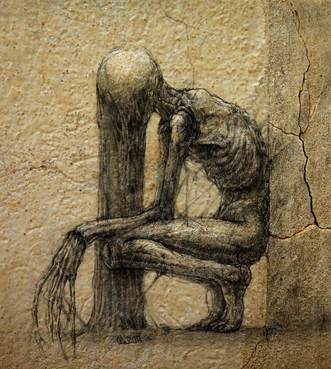 to me it looks like thoughts slipping/sliding/running their own way... distorted reality...