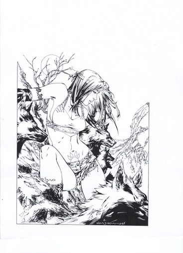 never been a big fan of the cross hatching that looks like tic tac toe. Thicken up the lines in the hair a little to give it some weight. Solid piece.