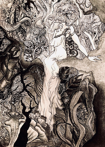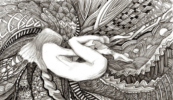 Klimt like...beautiful contrast between the smoothness of her body and the complication of her surroundings...