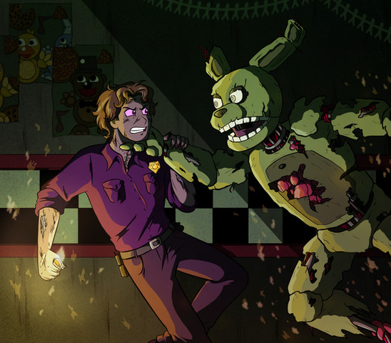 Mike and Springtrap --> Mike belongs to Mirage-Epoque!I can't believe, it's finally done... I'm crying...