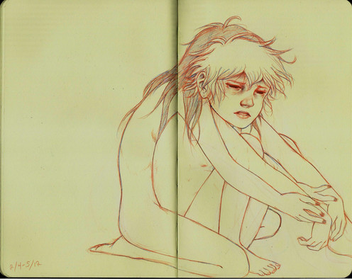 Nice form, sharp and sketchy style. It portrays the mood of almost trying to hide. Great coloring- is that watercolor or computerized?