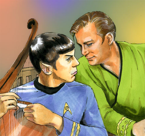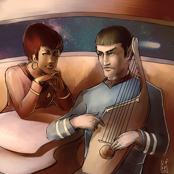 Drawn as a birthday present for my father ^^This is a scene from the episode Charlie X of Star Trek: The Original Series, where Uhura sings a song mocking Spock. I thought it was cool, so my dad and I are going to record a version of it ^^