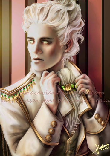 Thus is an amazing piece.I love his relaxed pose and the contrast between his hiar and clothes.I can't describe well how I feel bout it but it is a good feeling.