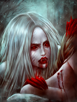#night #bats #blood #bruxa #claws #darkness #digitalart #digitalpainting #forest #fullmoon #perspective #trees #vampire #vampiregirl #witcher #woods #forestwoods #moretags #witcherfanart #witcher3 #witcher3wildhunt #witcher3fanart