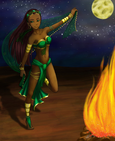 #balcony #blackhair #blind #blindfold #chains #closedeyes #dancer #gold #goldenchains #longhair #magi #moon #night #noeyes #reddress #smile #stars #woman #slavewoman #fire #magilabyrinthofmagic