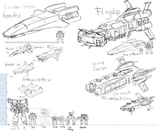 My thoughts on how the Ikazuchi Class Carrier from MOSPEADA/ROBOTECH might launch and recover their craft. The original design work and series leave a lot to the imagination.This capital ship operates her compliment of Mecha and Dropships in Space and theoretically needs to be able to efficiently recover hundreds of mecha, likely in as short a time as possible. I have drawn on several influences, from all of the three series of RT, to my understanding of real operational concerns of carrier type operations in the real world.