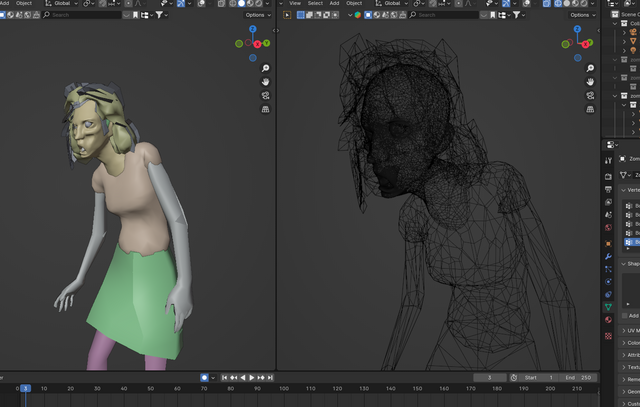of a Movies Game character into a single posable object in blender. The "Jenny" character is composed of the