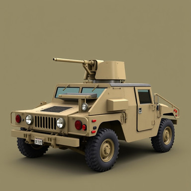 The High Mobility Multipurpose Wheeled Vehicle, more commonly known as the Humvee is a 4-wheel drive light truck produced by the AM General corporation. The Humvee was first produced in 1984, and was designed as replacement for all of the US military's other utility vehicles such as the Jeep, and the M561 Gama Goat. The vehicle first went into combat in 1989 during Operation Just Cause, the US invasion of Panama. It saw even more action in Operation Dessert Storm, where it traversed the rough deserts of Iraq easily. The Humvee has retrofitted to serve a wide variety of roles; some variants fire TOW and/or surface-to-air missiles, others have been converted into armored ambulances, other variants serve communication roles carrying satellite dishes. This model is equipped with a rotating turret where a machine gun would be mounted. Humvees have been fielded to many other nations like: Greece, Jordan, Israel, and Poland. Because of its popularity in the military, AM General began producing a civilian model called the Hummer to the US public.Related content