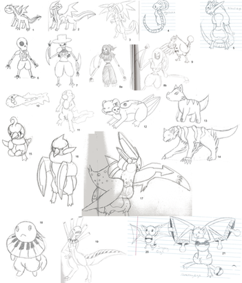 So many creatures, so little time. Welcome back to the creature compilations with the fourth instalment of the series! Also the last for now, as I need to make more. This time around we have two(four if you include the bugs) Pterraforming creatures, two fakemon, and six Lucid characters/creatures.Creatures are numbered and labeled with a letter designating which project they are from.