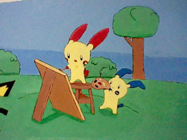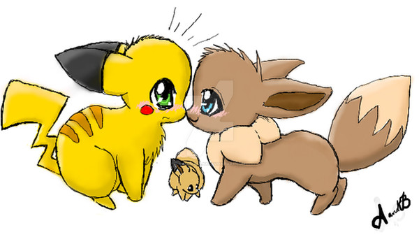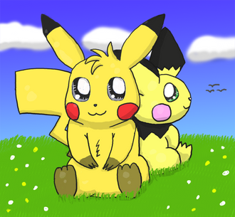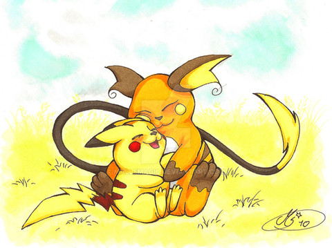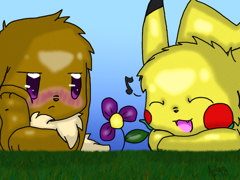 A drawing that asked me to do. Its so cute. I took like 3 or 4 hours doing it.My OC Light the Pikachu and Roxas Pikachu. Roxas Pikachu kinda loves Light that she's blushing, and Light doesn't understand why and is blushing.