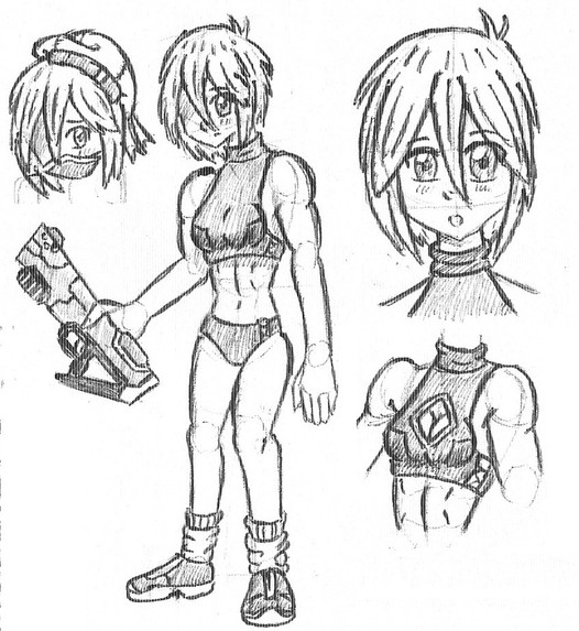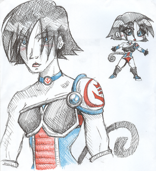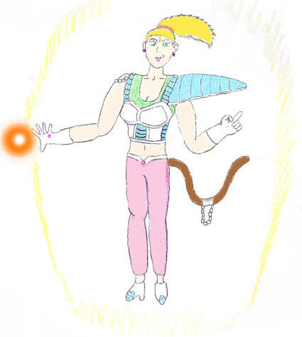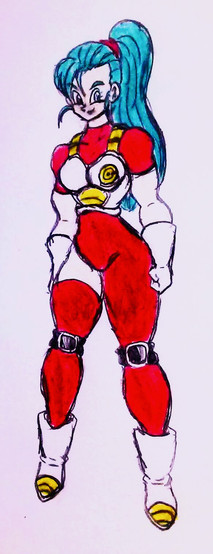 An Earthling Time patroller, turned into an infinite energy model cyborg. A serious fighter with a major chip on her shoulder due to the precieved weakness of Earthling fighters historically (especially compared to certain resident Saiyans). This, combined with a rather large losing streak against other time patrollers resulted in an on-and-off personal belief that Earthlings are worthless (herself included). Her becoming a cyborg was a kind of accident. It's unknown who exactly turned Eenen into one, and the fact they can't figure out what happened worries the Supreme Kai of Time. If she had a unique attack, it'd be called "Drunken Missiles". A tracking barrage of energy blasts which go on until you've emptied your Ki bars.