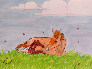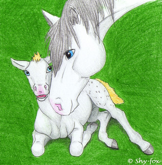 this is Liana when she was born wasn't she cute?? lolokinthestorythough she was born in a cave i drew the pic before istarted the story though.all of my artwork is in the style of spirit, its not my style.