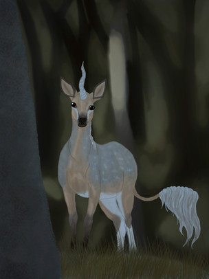 white unicorn with black face: Adonis (Doni)