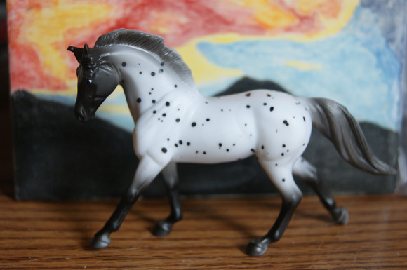 He is standing in the snow fed water hole atop Pryor Mountain. he had an itch, but i just really liked how he was posing.