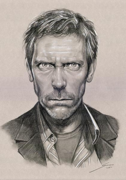 Pencil and white cryon on colour paper
