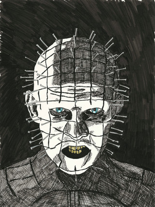 astonishing artwork! ive seen the whole series its an amazing movie and this is great picture of pinhead. you need to draw chatterteeth!
