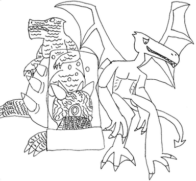 One of two pieces made in anticipation of the upcoming Beast Wars comic courtesy of IDW featuring my personal ideal lineup of Predacons. Clockwise from top left:Jetstorm: Snide, self-centered, and overbearing, Jetstorm isn't very well-liked by his cohorts, but his value in aerial assault is unmistakable. Equipped with air-to-surface missiles and acidic spit.
