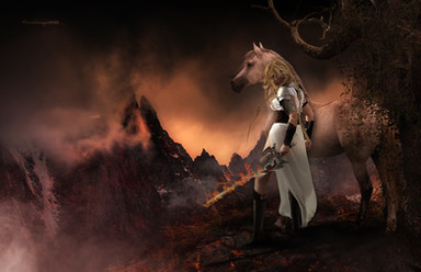 What strikes me in this image, is the reflection, wonderful! I also like that you gave the horse a rider, well done.