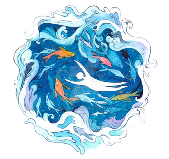 #blue #colorful #colors #coral #creepy #fish #human #nature #procreate #tree #underwater