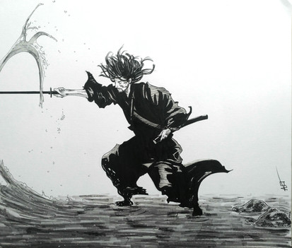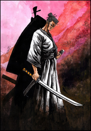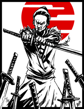 Would I be right in guessing that you used the markers for the samurai and ink for the background?