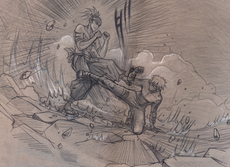 Done for fun. Sketch about my version of adult Sasuke and Naruto from manga/anime Naruto. Their last battle, this scene went to my mind when I was hearing this song from Naruto Shippuden Opening 2 [link]Don't ask I've not drawn Sakura cause I don't like her, Sakura=Shit.