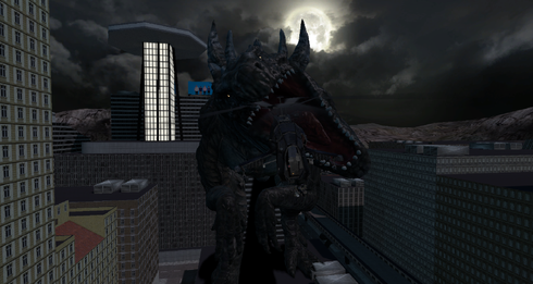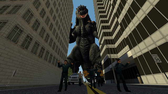 This shot was sort of inspired by the artwork of the original Godzilla of 1954, where Godzilla has one end of the train in his mouth, and the other end of the train in his left hand.Game Used- Garry's Mod