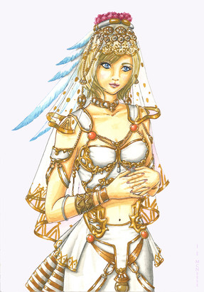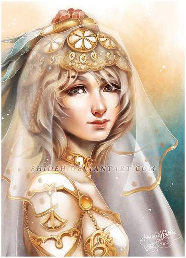 This is completely gorgeous! Your coloring is superb and the aesthetic is unique yet reminiscent. I would say that her head is a tiny bit too big for her body, but the composition is flawless.