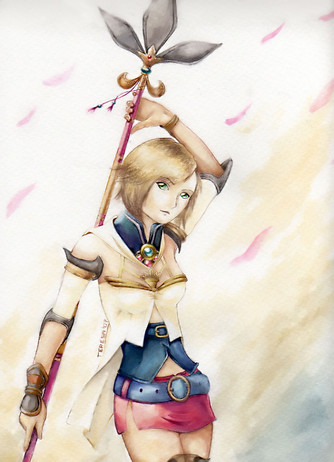 AHhhhhh. Watercolor of Rosa. Picture taken with my webcam so the quality is shit. Painted on a 16x12 inch watercolor paper. Sorry you can't see all the details, it's too large to scan. ><Rosa -> Final Fantasy IV