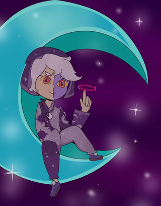 In this drawing there's a girl with long black wavy hair wearing a froggy hat, mushroom sweater, brown skirt, white tights, and boots. And she's also looking at a ladybug that's on her nose.Related content