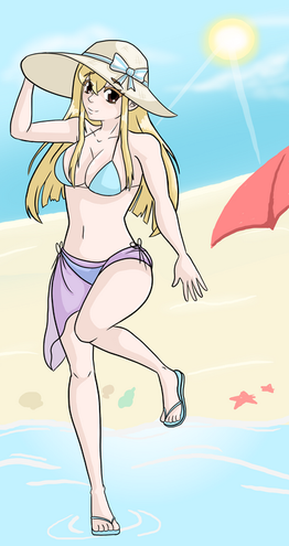 #animegirl #beach #blondegirl #blondehair #cutegirl #girl #ponytail #summer #summertime #swimsuit #woman #onepieceswimsuit #thickthighs #thicc