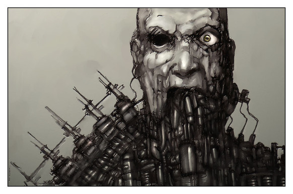 This looks wonderful, the Robot looks very quiet and intimidating, and its cold look gives much mood to the Art!
