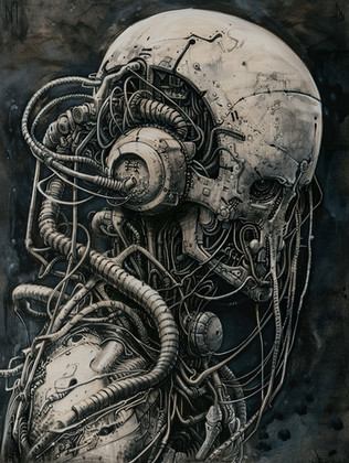 creepy. hehe. great feeling you have for drawing shadows on that man-robot things you are drawing. kinda dark artist. i like your style man
