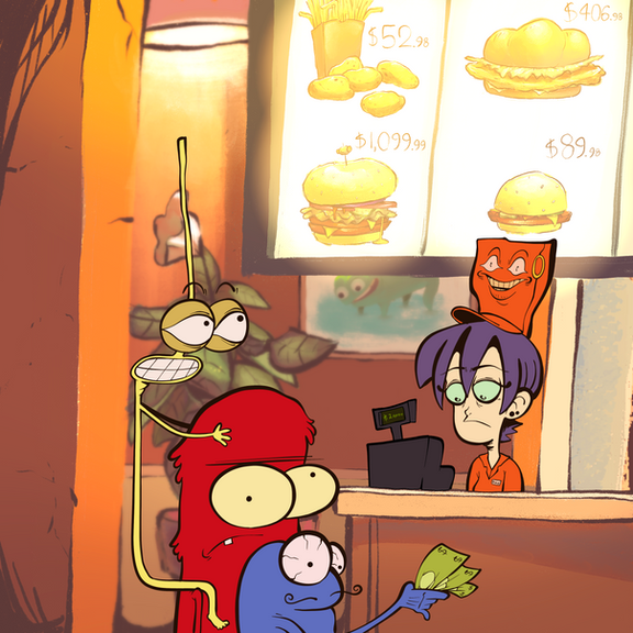 Dat sandwich looks horrible But it got me to stare at this art, and I'm diggin' it. Nice work.