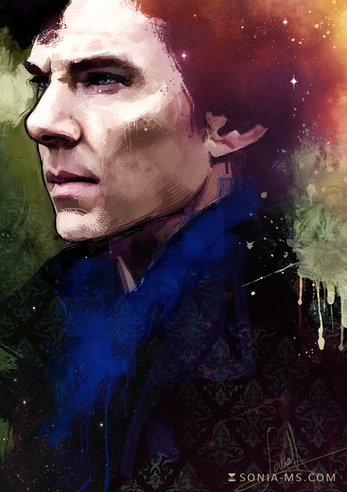 an ancient commission for ~beaufille - originally something else, it was later changed to a portrait of Benedict Cumberbatch from the the BBC series, Sherlock.i wanted to give the stain in the background an effect similar to that of luminol to make the link with the show a bit more clear. i haven't seen much of the show itself but i hope this will still be satisfactory to my commissioner and other fans of sherlock.