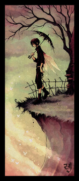 Whoa, i love those clouds.. Man, I thought this was done in marker! You get such lovely natural media effects in photoshop - I'm amazed ! I love his wings and the ribbons.