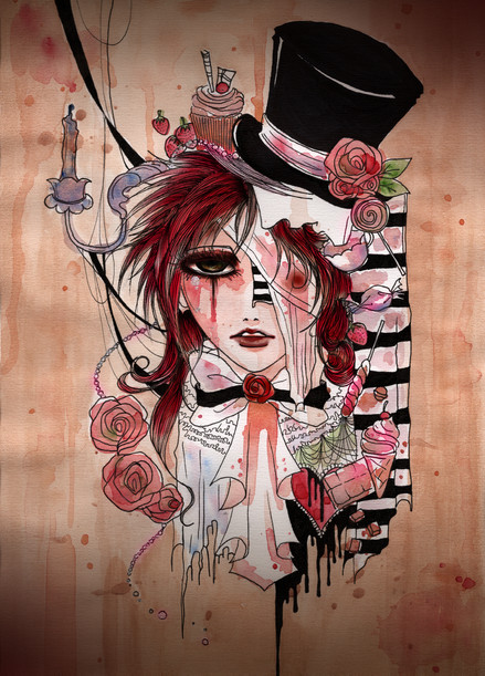 Altough it makes me a little bit scary... i love the colors you used, it make it all look, well not bloody, but, well... full of blood? I don't how to say it! English is not my fav language