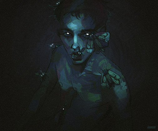 Oh my... Dark colours and moths on a "tortured" character. I am really in love with your art !