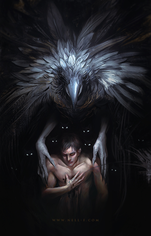 I'm amazed and in love - all those grasping hands, the delicate moths, his piercing eyes Stunning work! With how you executed all these hands, I'd never have guessed you found them difficult!Β