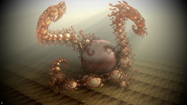 Mandelbulber v2.24 openCL GPU renderWhat a mess just kept adding stuff, a bunch of lights, ambient occlusion/lightmap, basic fog + fog based on distance, a ground plane, a BG, iridescence and some chromatic aberration, finally got bored and quit just rendered it.
